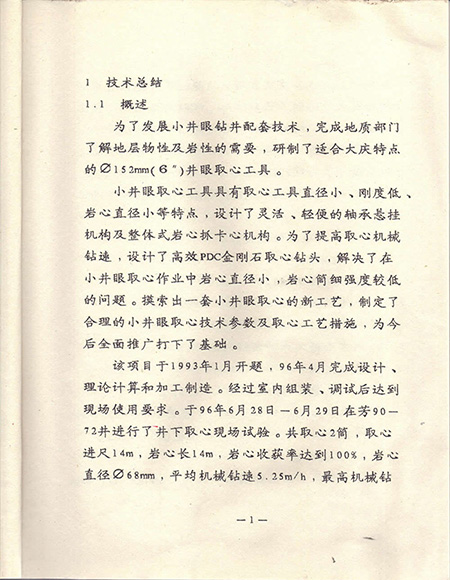 小井眼取芯工具